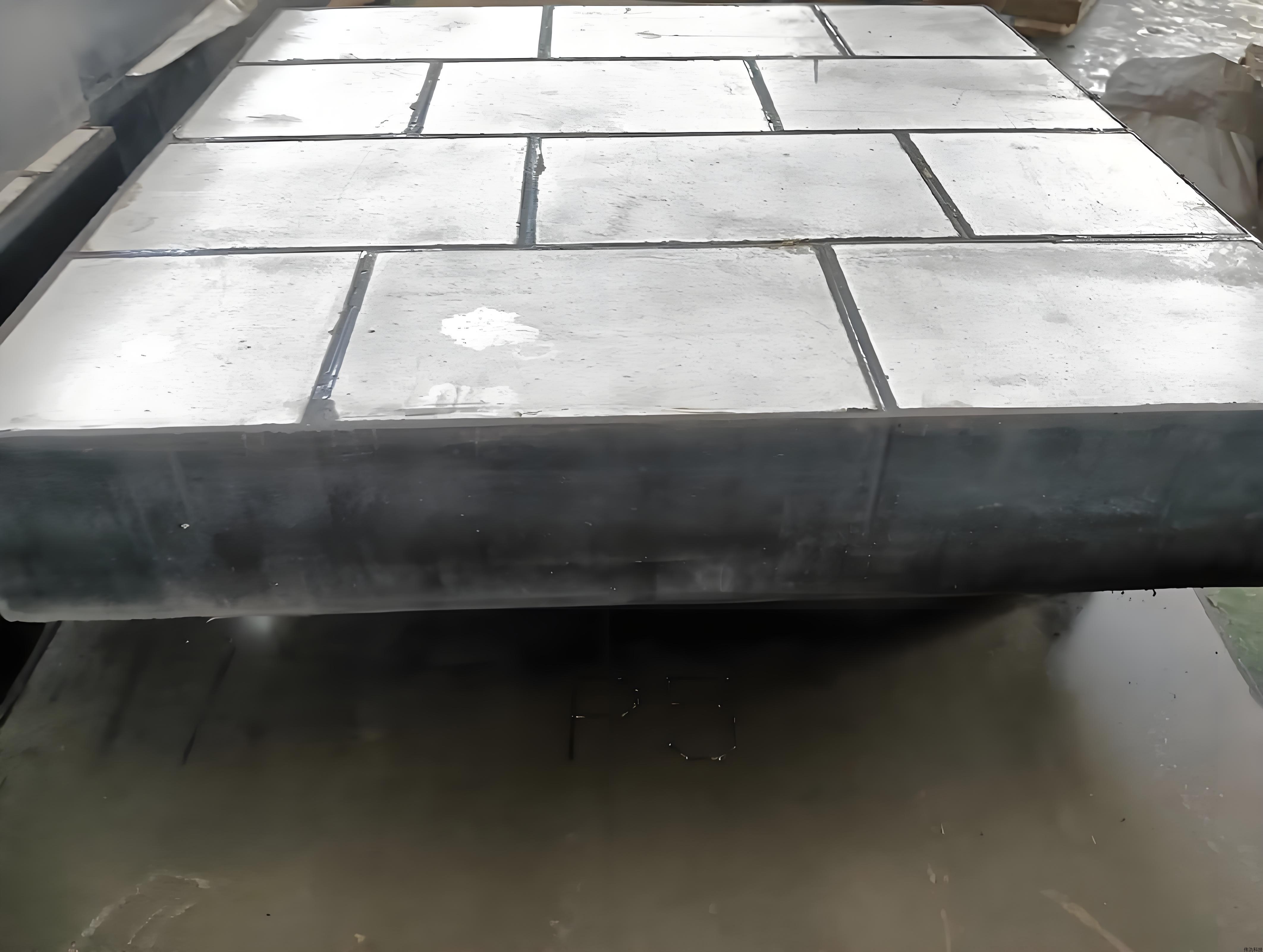 衬板采用陶瓷橡胶整体硫化工艺制造,具有高耐磨性(耐磨度为锰钢的260倍)、抗冲击(ZTA增韧氧化铝结合三层复合结构,吸收60%冲击能量) 、耐高温(耐热型工作温度≤250℃)及耐酸碱(pH1-14)等特性。内置橡胶缓冲层可吸收大颗粒冲击力,表面光滑降低物料通过阻力。结构通过螺栓或焊接固定陶瓷与钢板,支持扭曲组合拼装,便于安装更换。