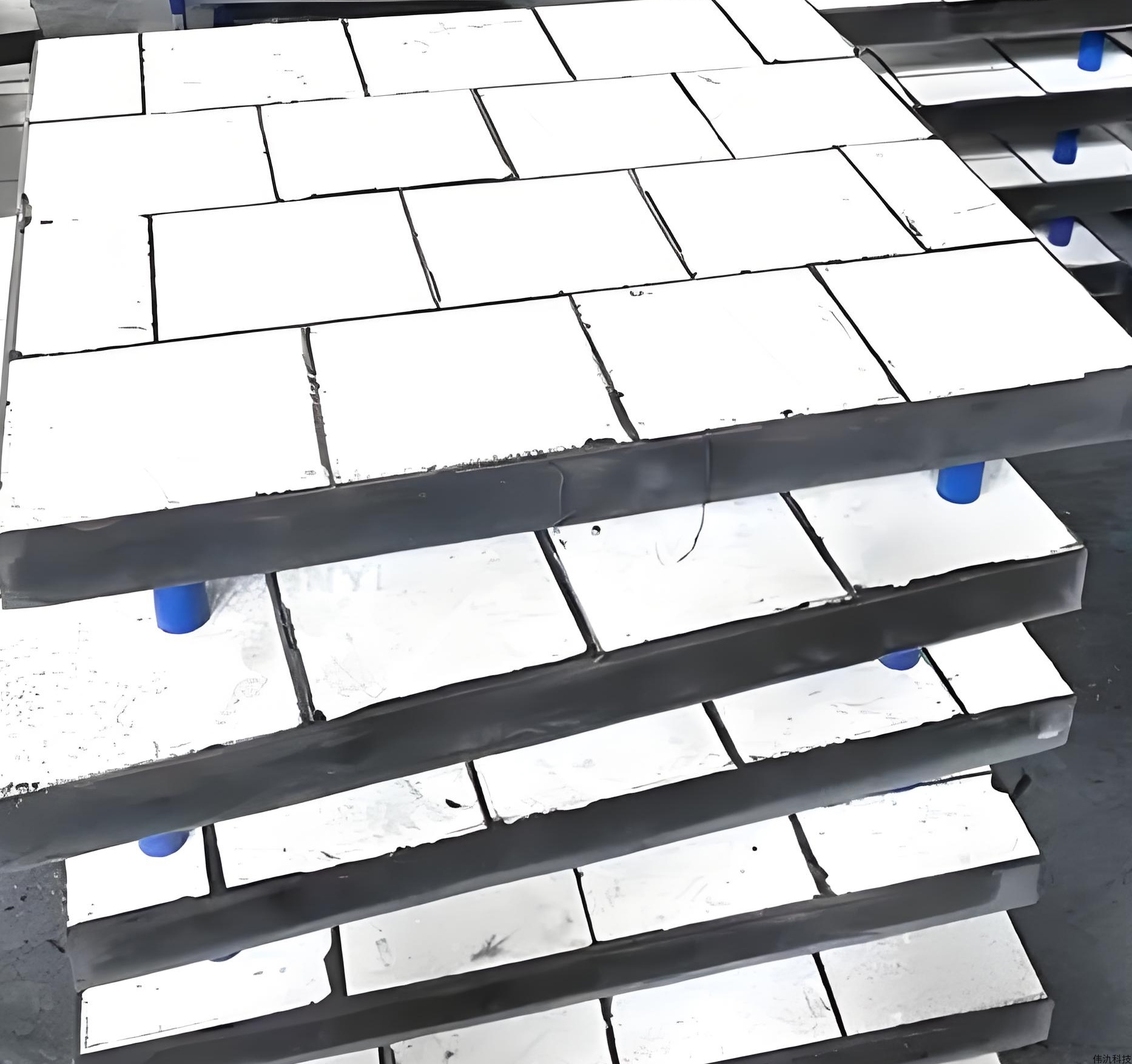 耐磨陶瓷衬板是以氧化铝(Al₂O₃)为主要原料(含量≥95%),添加配料经1700℃高温烧结制成的工业耐磨材料,密度≥3.5g/cm³。该材料主要应用于火电、钢铁、矿山等行业的输料系统、制粉系统及机械磨损部件。