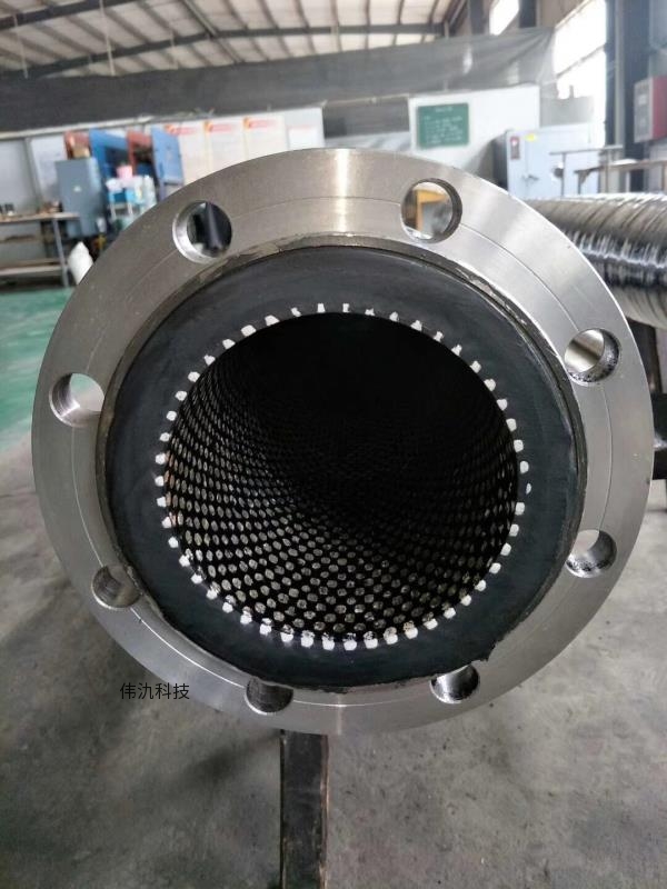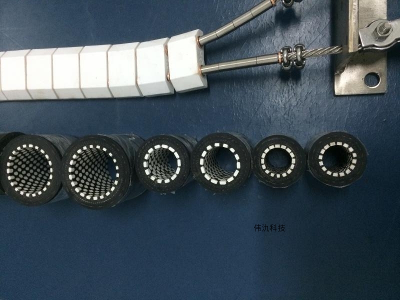 4、柔韧灵活:橡胶管内圆柱陶瓷片的独特设计和安排使管道具有良好的柔韧性,可进行较大角度的弯曲。